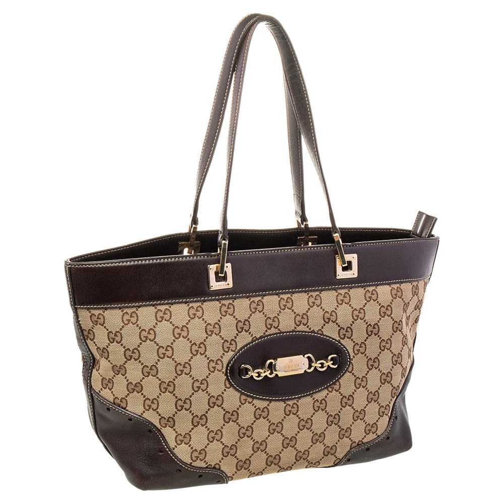 Gucci Beige/Brown GG Canvas and Leather Tote