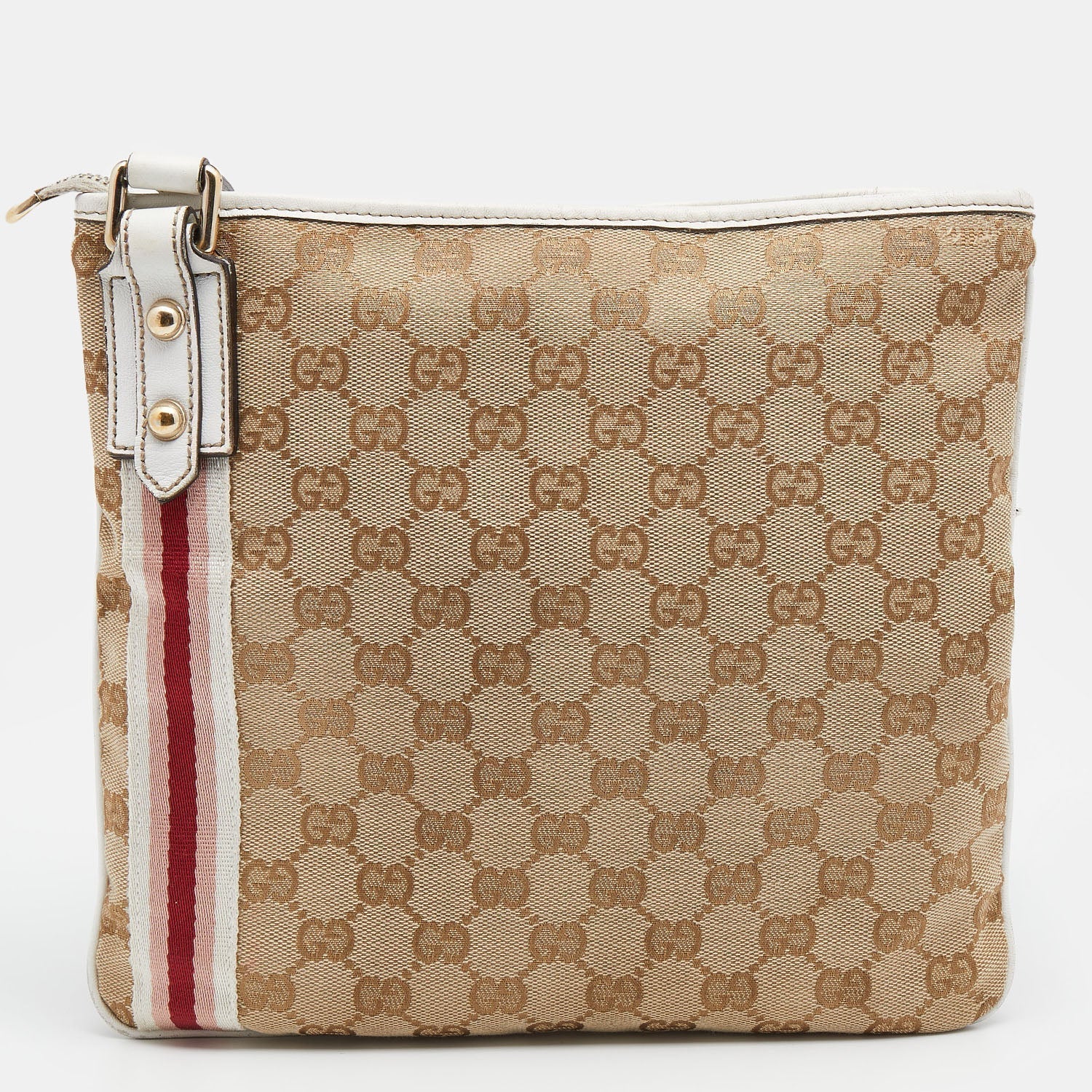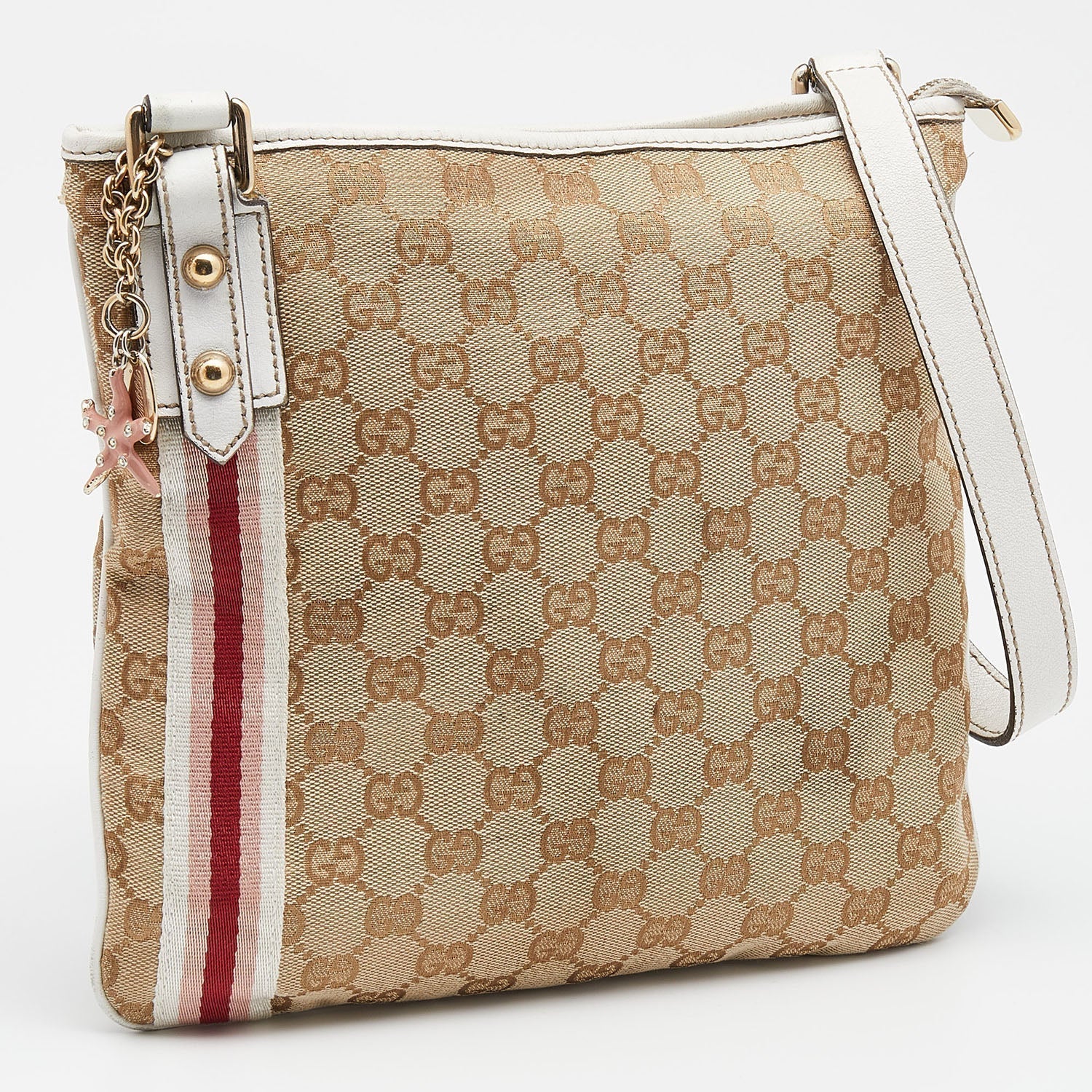 Gucci Beige/White GG Canvas And Leather Web Jolicoeur Charms Shoulder Bag