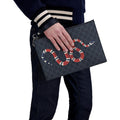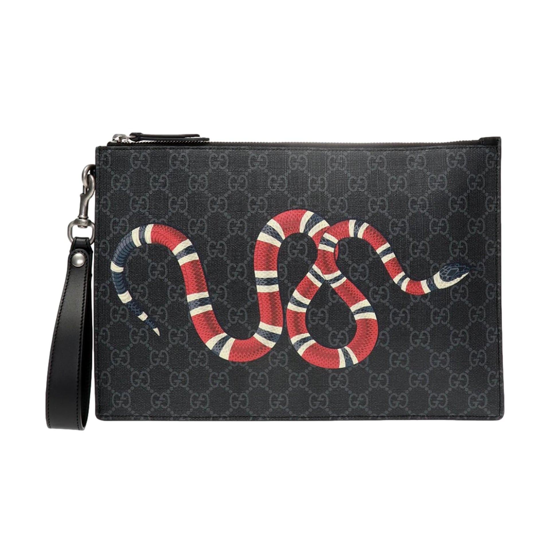 Gucci Bestiary Kingsnake Black GG Supreme Canvas Wristlet Clutch