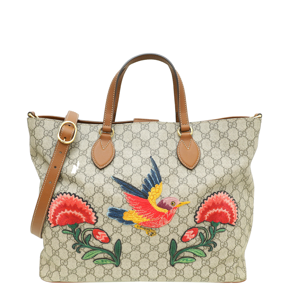 Gucci Bicolor Soft GG Supreme Floral/Bird Embroidered Ltd. Ed. Tote Bag