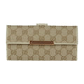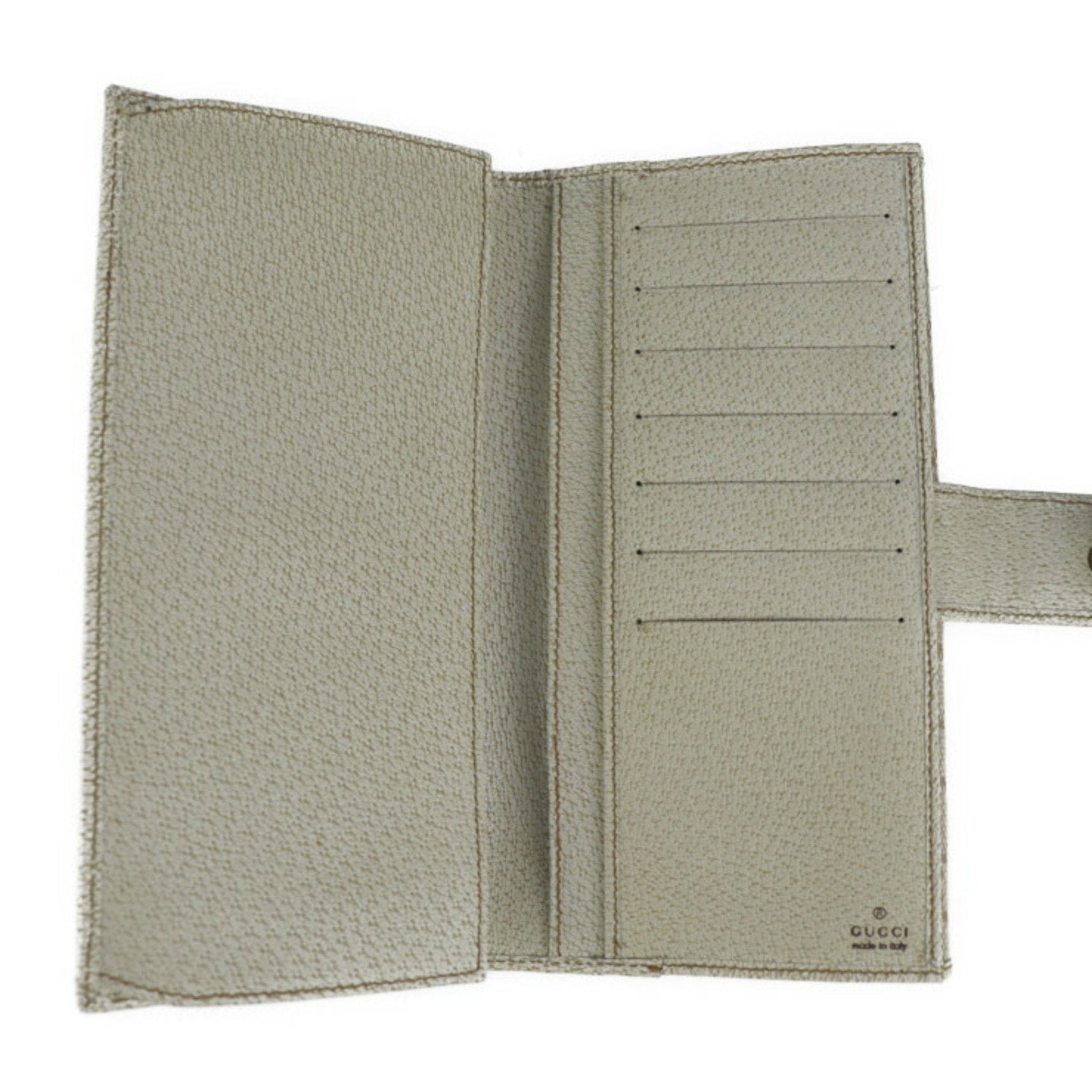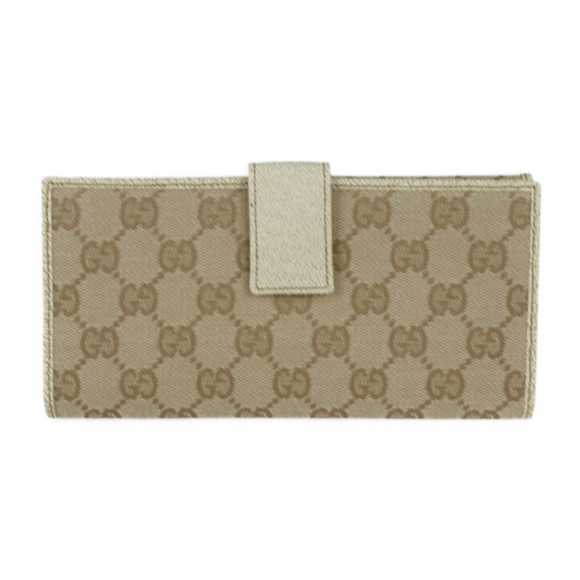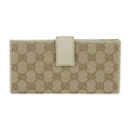 Gucci Bifold Wallet 112715 GG Canvas Leather Gold Beige Ivory Bronze Hardware W Hook Long Logo Plate