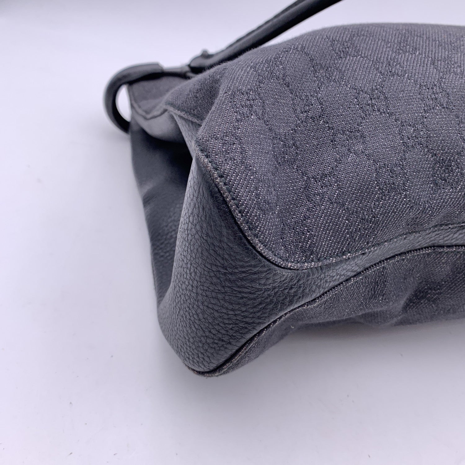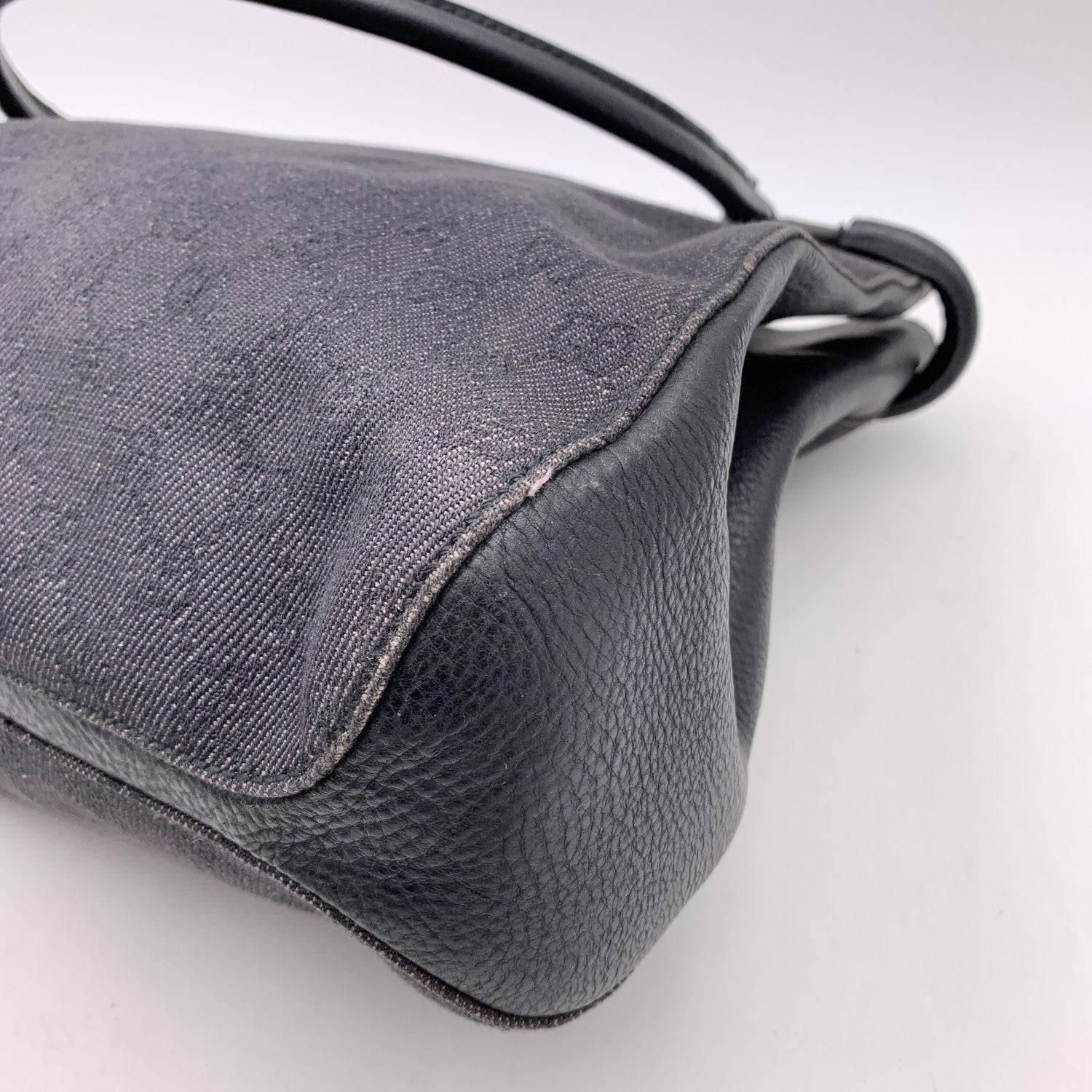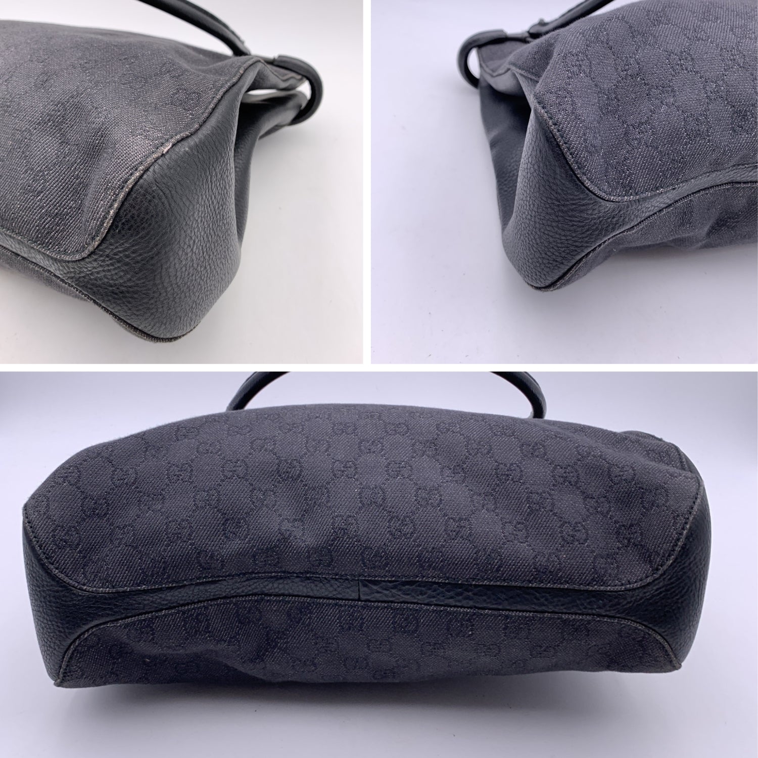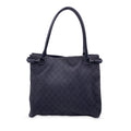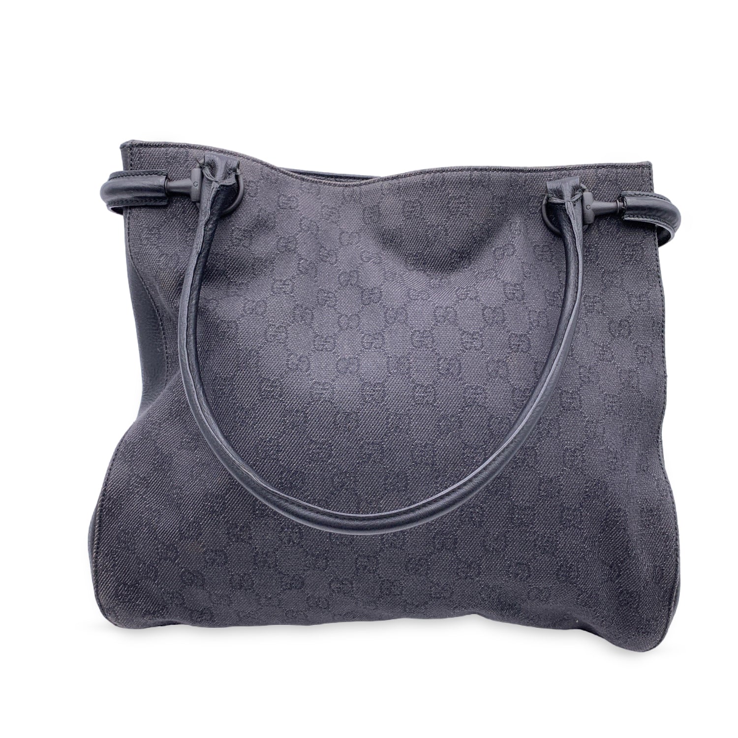 GUCCI Black Denim Monogram Canvas Shoulder Bag Shopping Tote