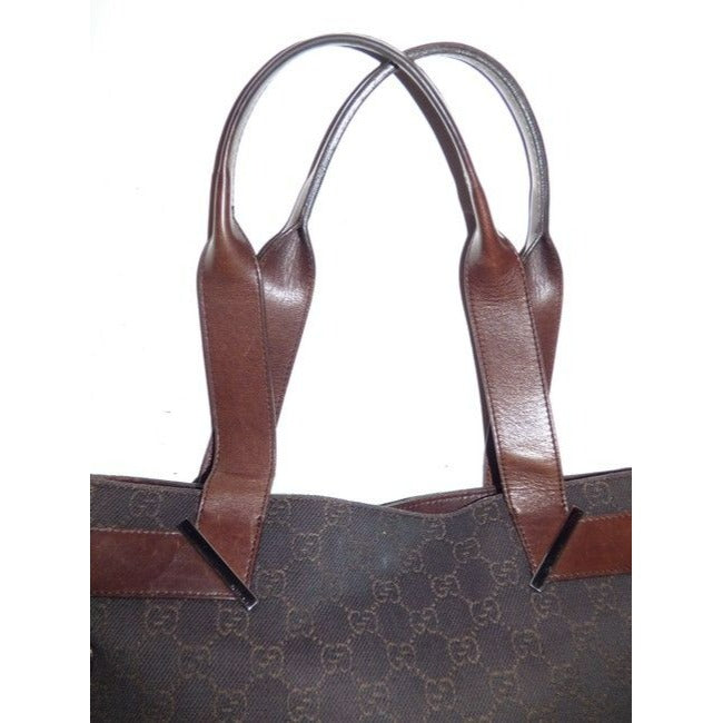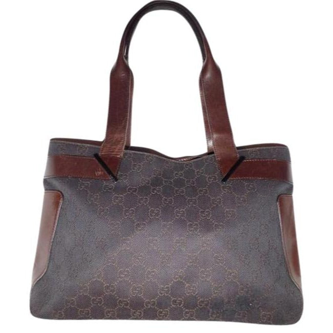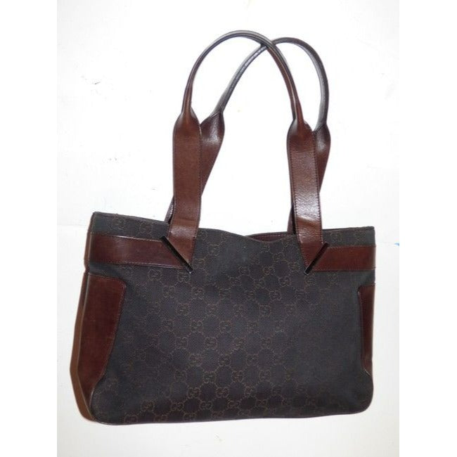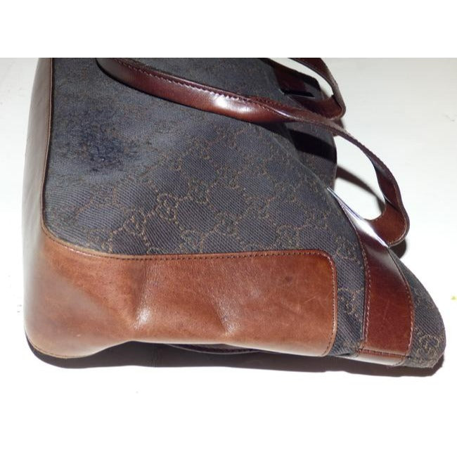Gucci Black Denim With Brown Large G Logo Print And Brown Leather Tote