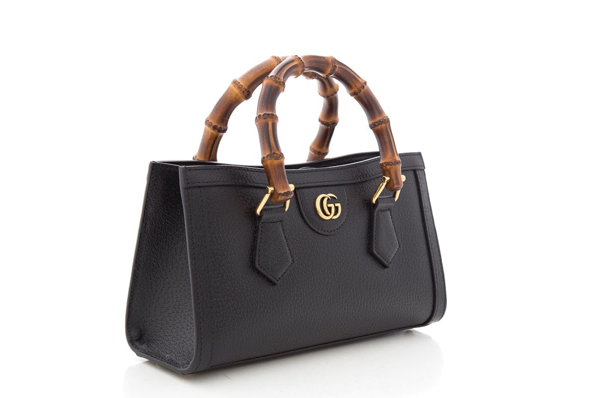 Gucci Black Diana Handbag with Bamboo Handle and Grey Handle Detail. This item is new.