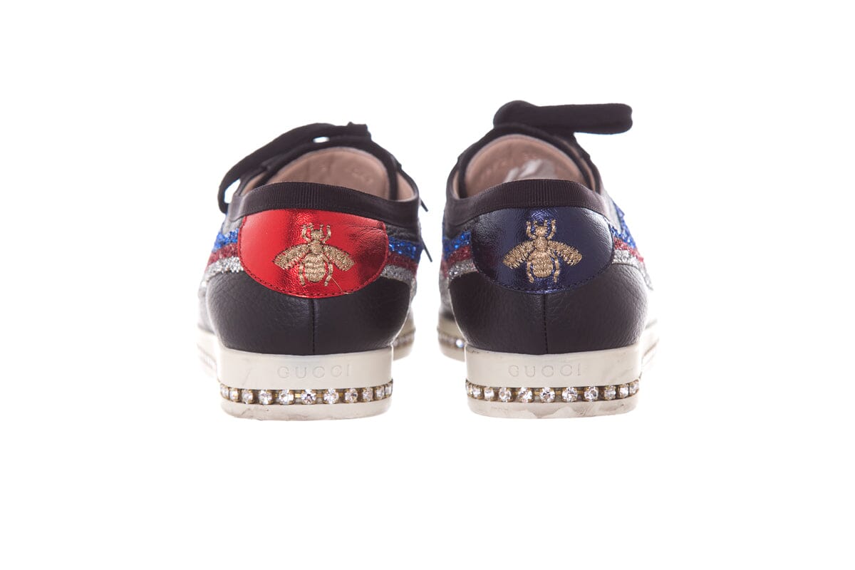 Gucci Black Falacer Glitter Sylvie Web Sneaker SZ 39