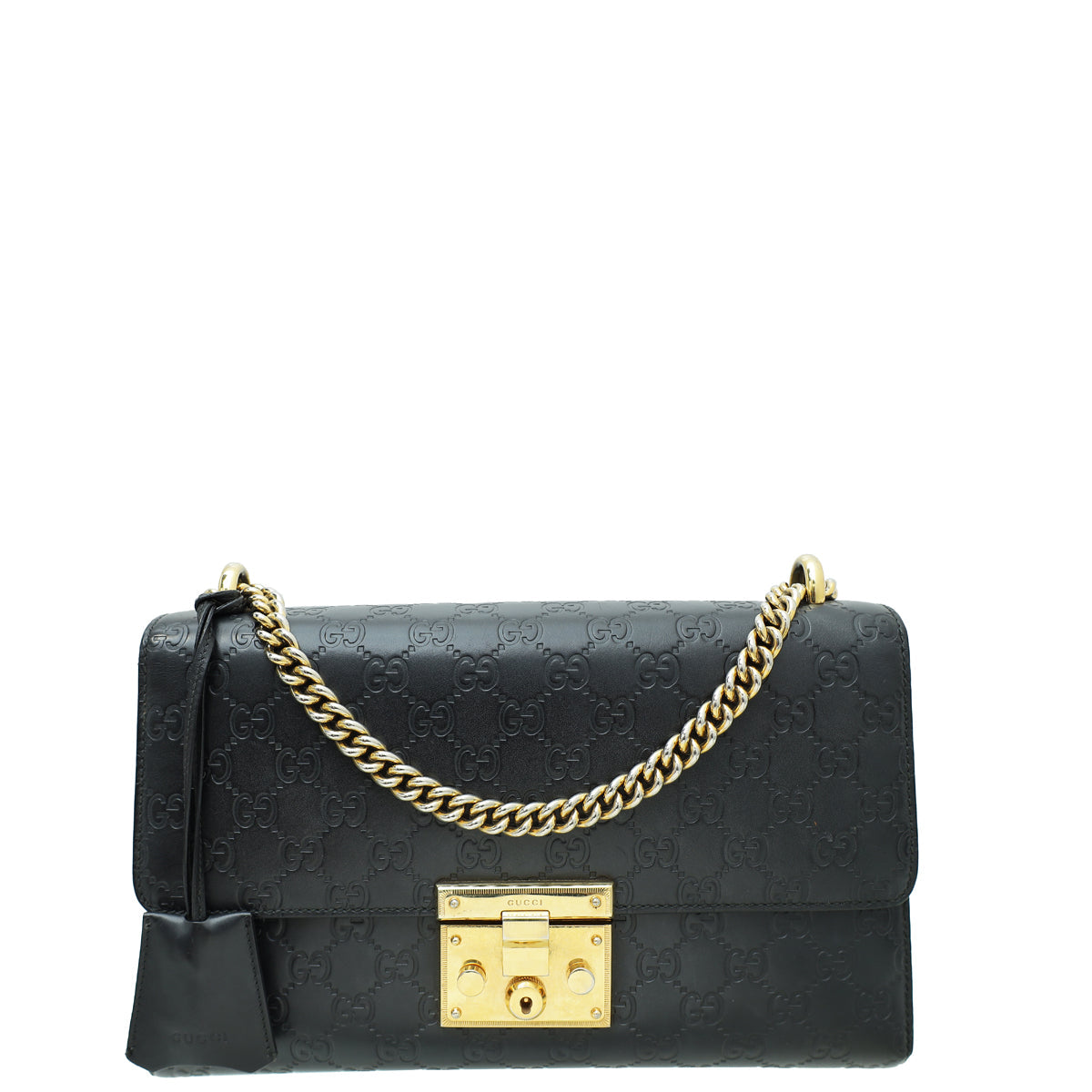 Gucci Black GG Guccissima Padlock Medium Shoulder Bag