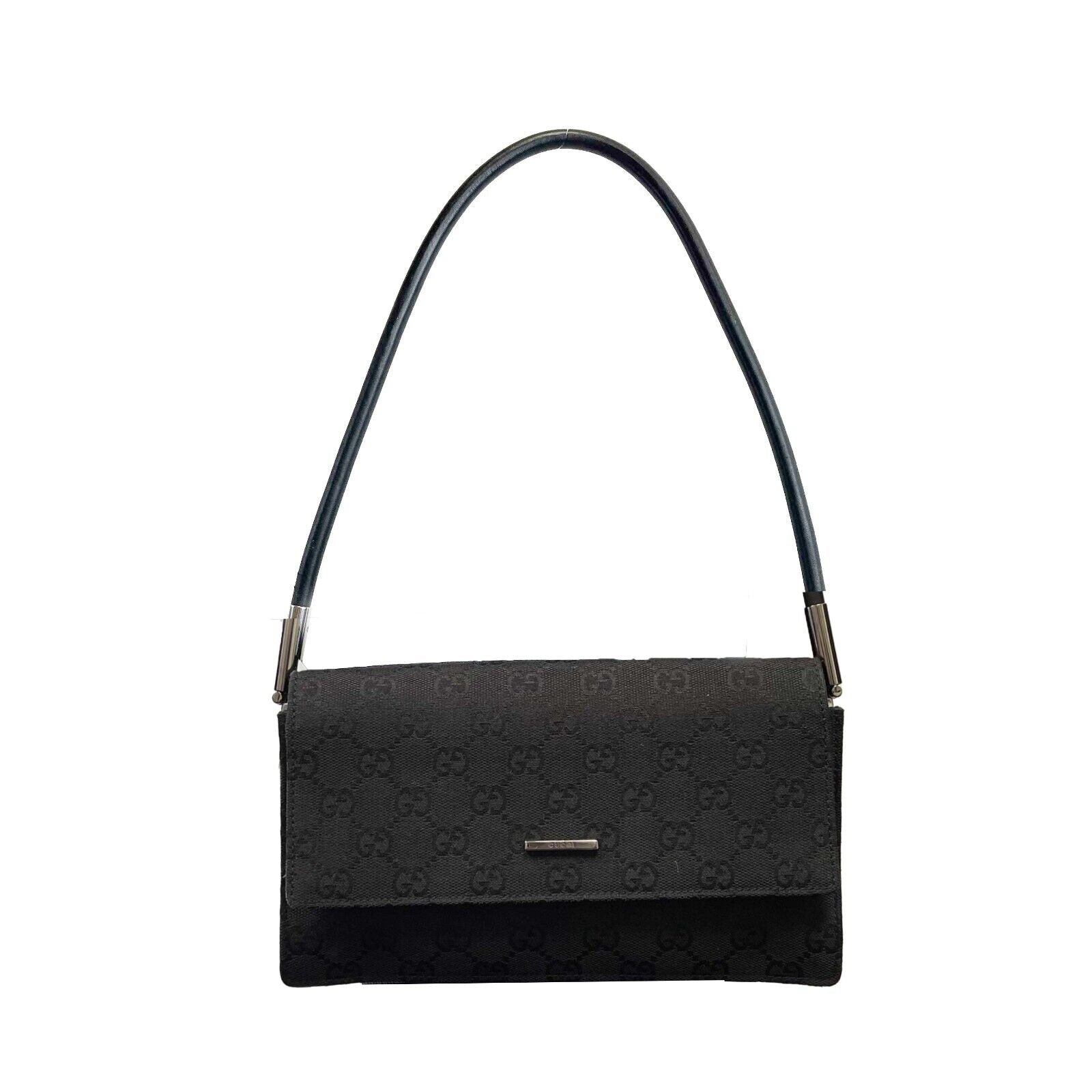 GUCCI - Black GG Monogram Canvas Shoulder Bag