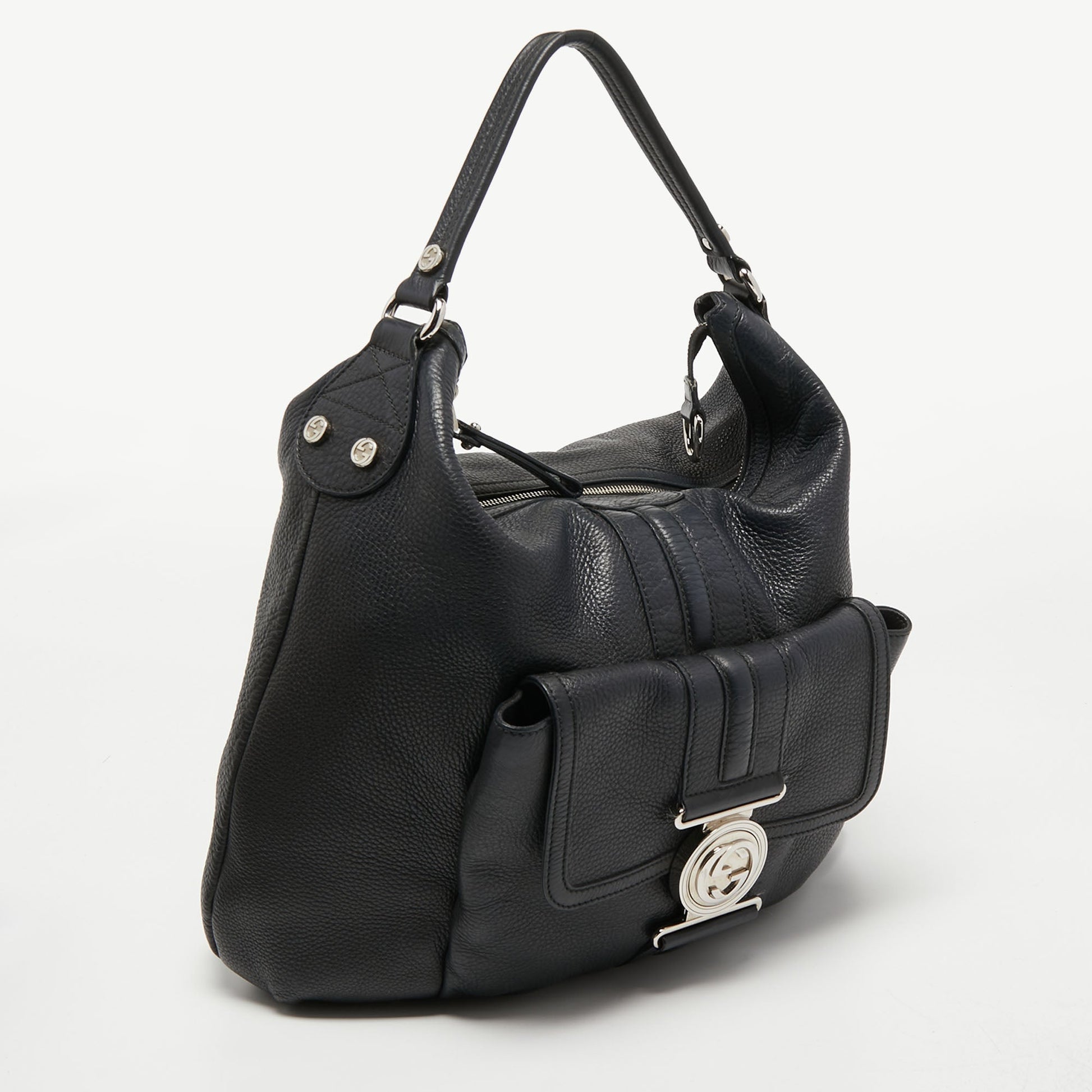 Gucci Black Grained Leather Medium G Coin Hobo