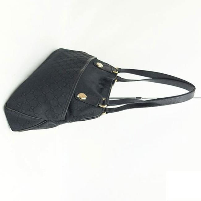 Gucci Black Large Logo Print Canvas And Black Leather Satchel