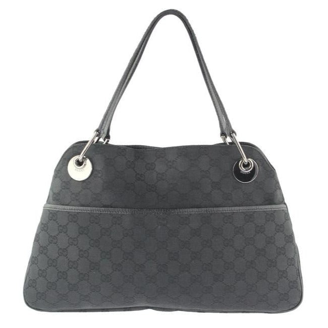 You will never need another black purse! This is a wonderful, everyday, leather & fabric, purse with an edge! It would make a great gift for someone else or for yourself. It would be a fantastic addition to any collection! It is Gucci, so it will never go out of style and has all the quality Gucci is known for in its leather pieces. If purchased new, a purse like this would cost $$$$! No one needs to know the deal you got- Don't miss out!