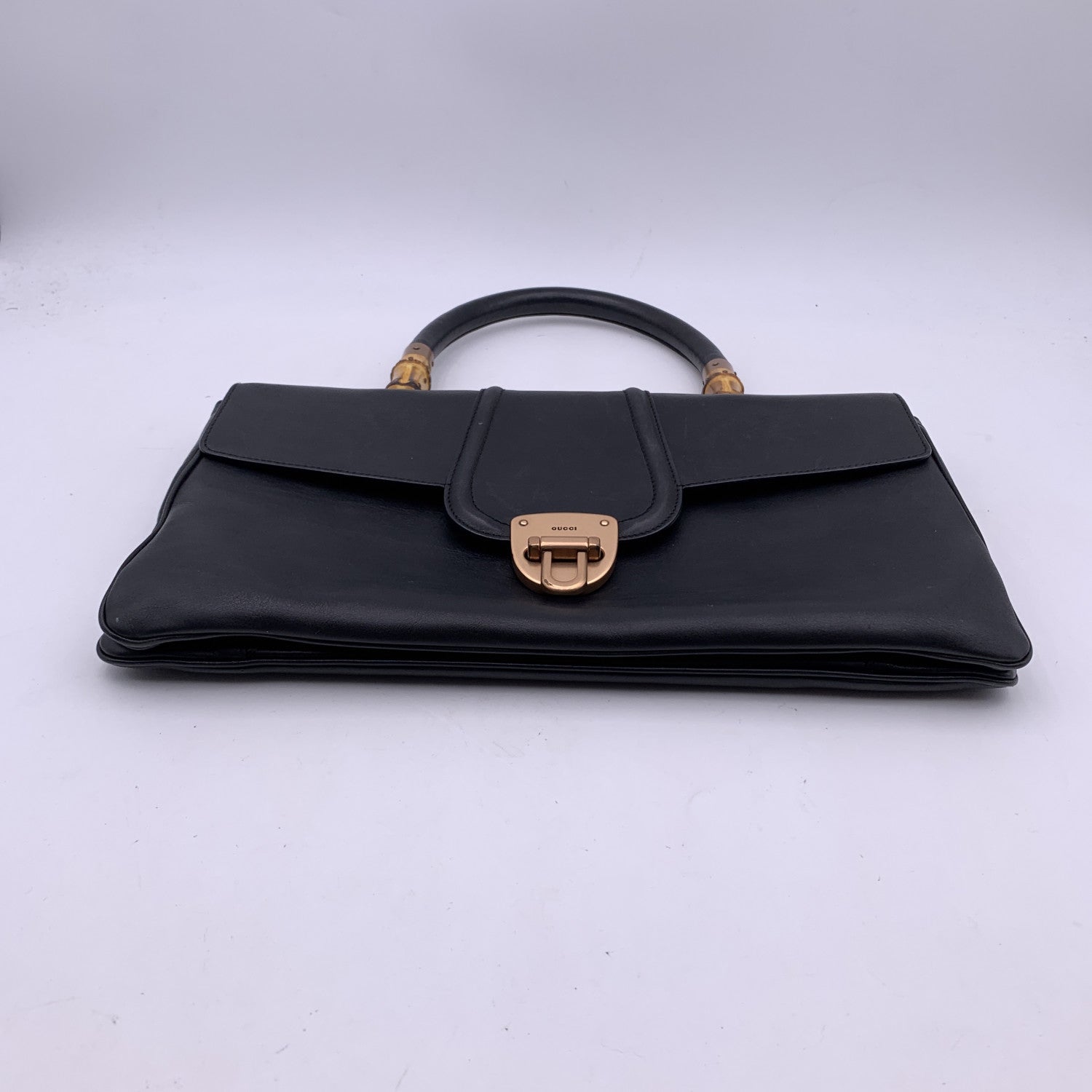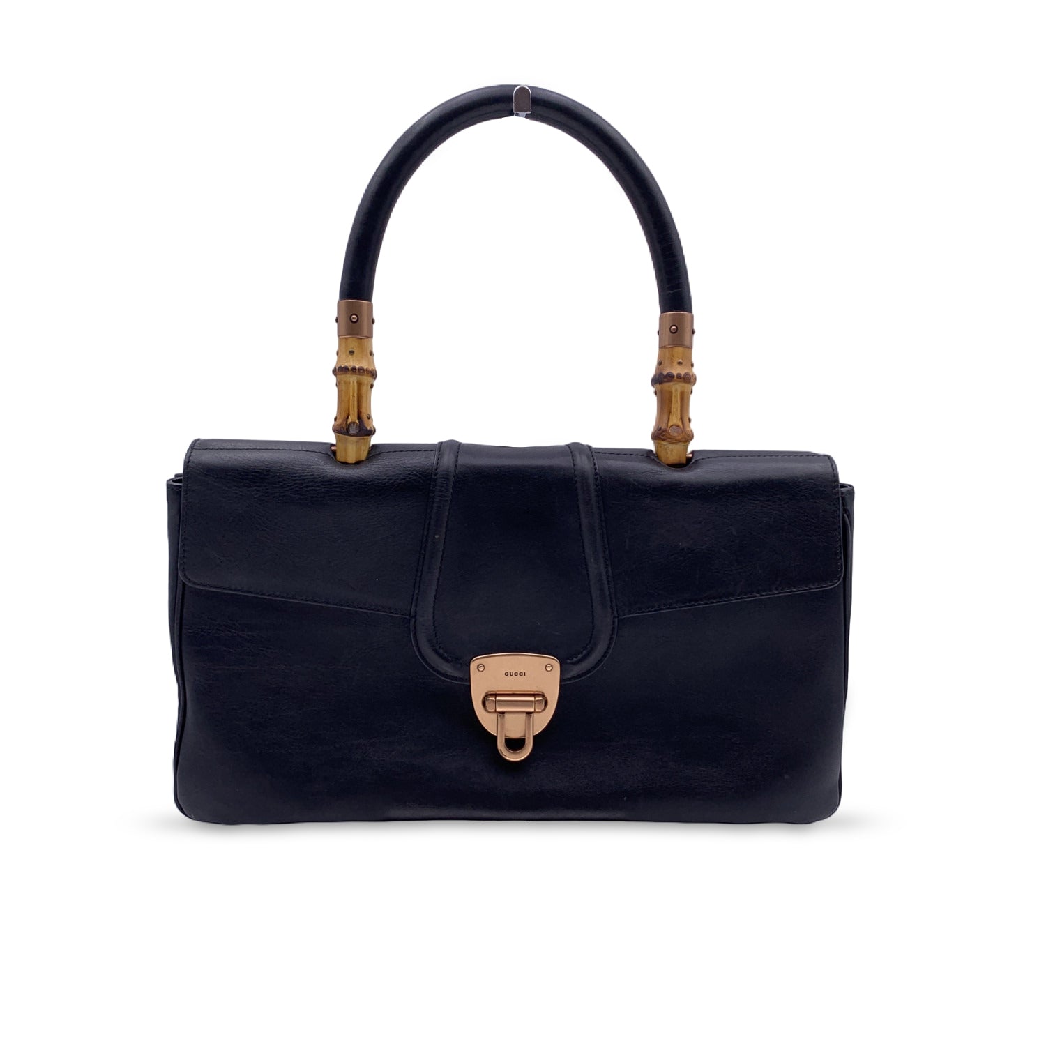 GUCCI Black Leather Bamboo Detail Handbag Satchel Bag