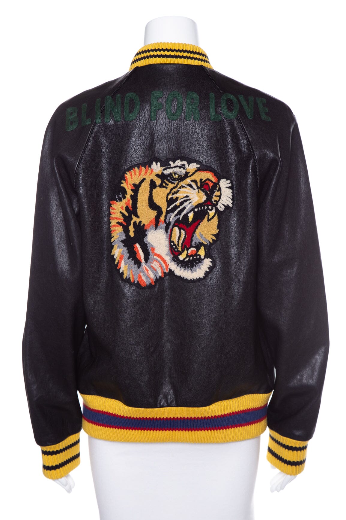 Gucci Black Leather "Blind For Love" Tiger Jacket. This item is in very good condition.
