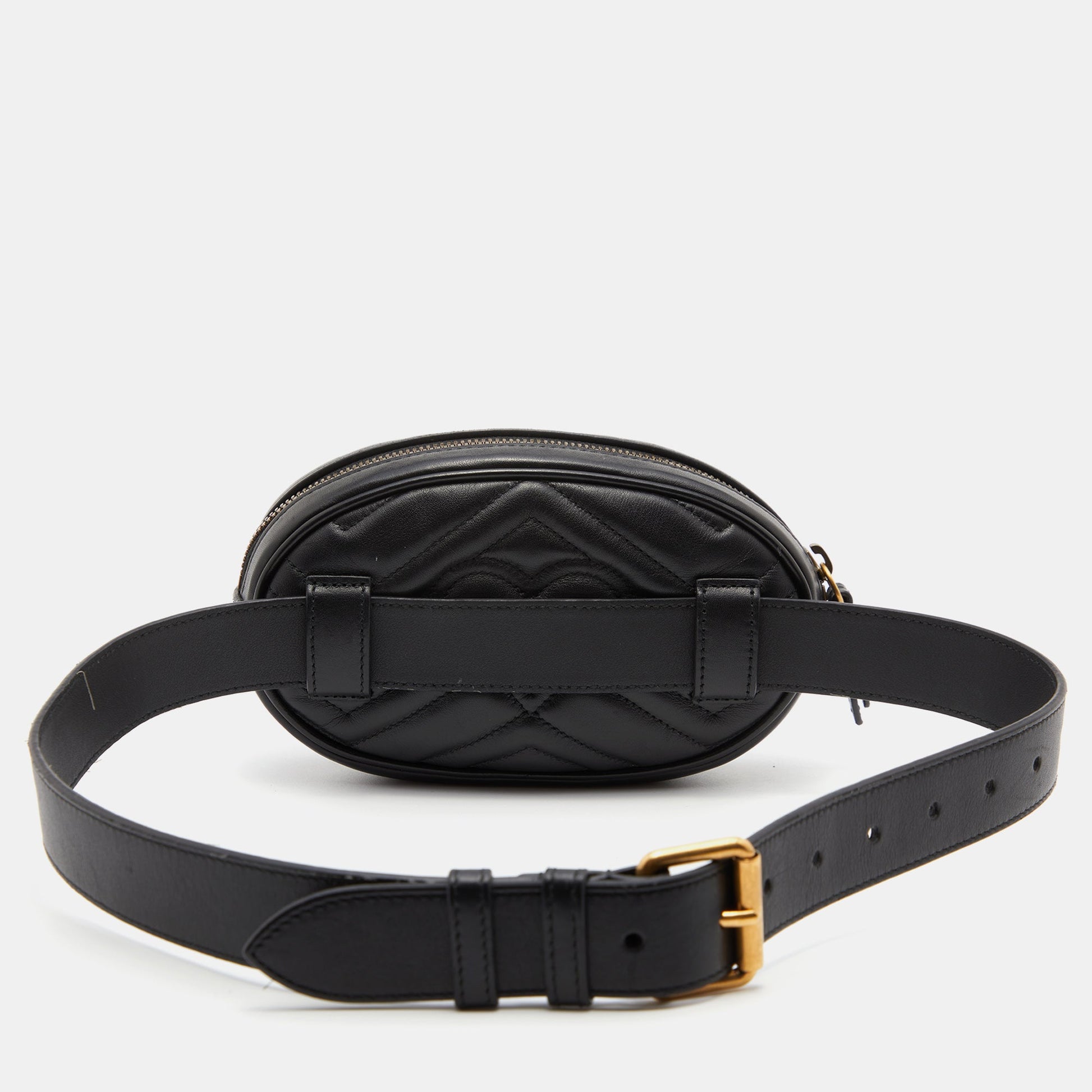 Gucci Black Matelasse Leather GG Marmont Belt Bag