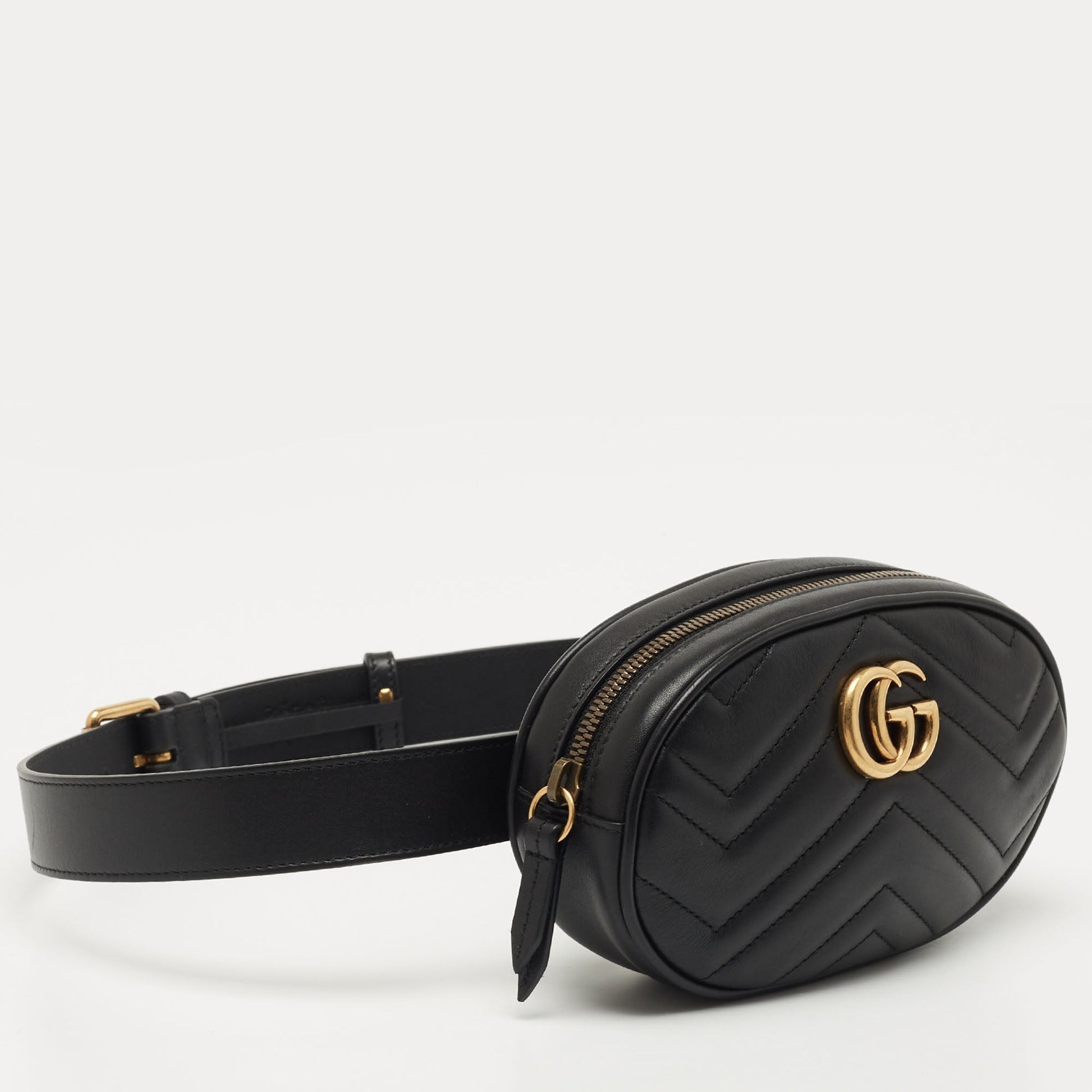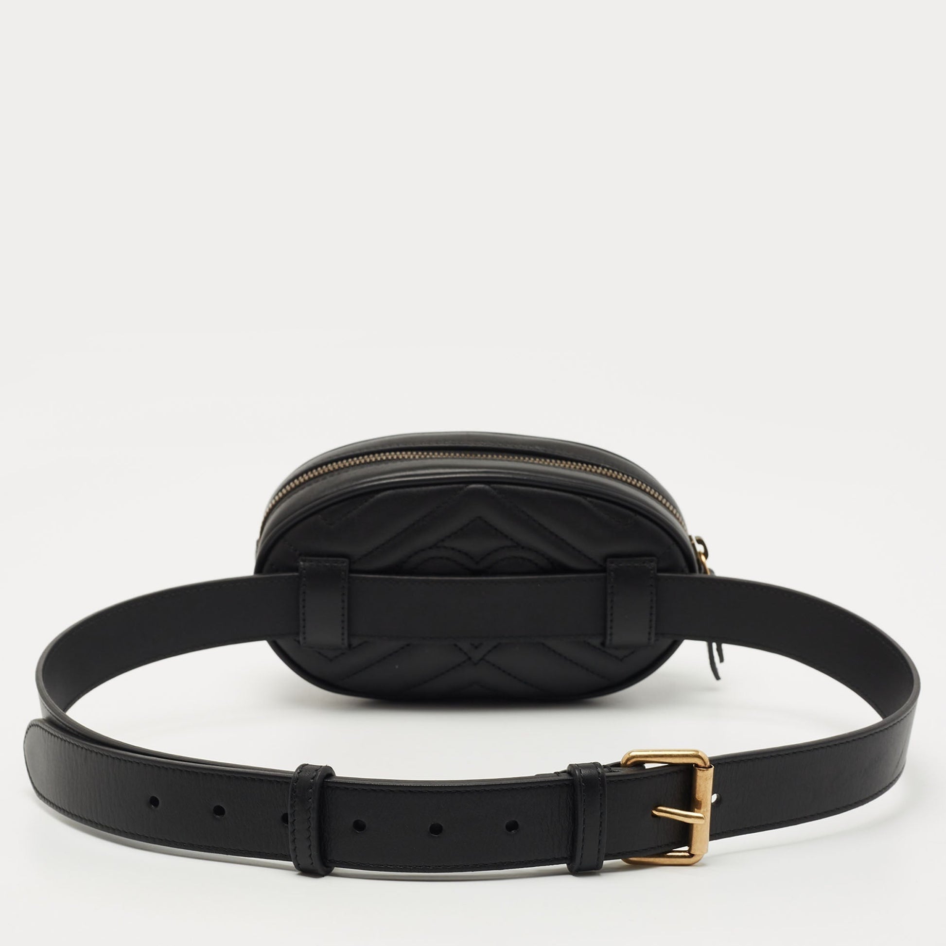 Gucci Black Matelasse Leather GG Marmont Belt Bag