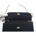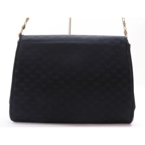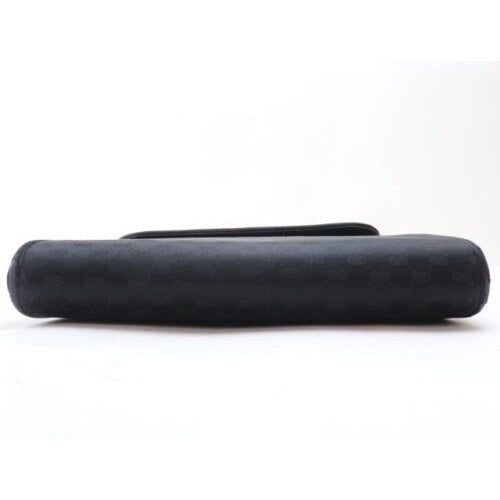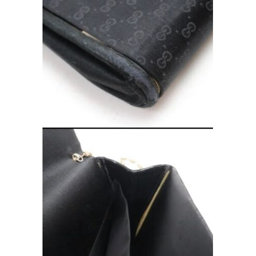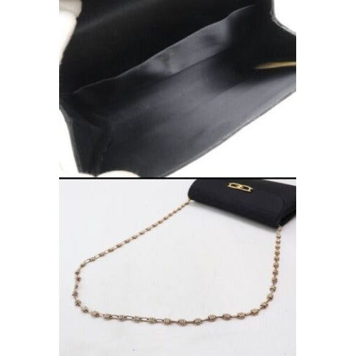 The bag is a RARE and unique find! The purse is a two-way style with a removable gold chain strap. It is made from black silk leather on the exterior. The purse has a short envelope flap top with a snap closure. The purse has the GG logo in gold hardware on the front.