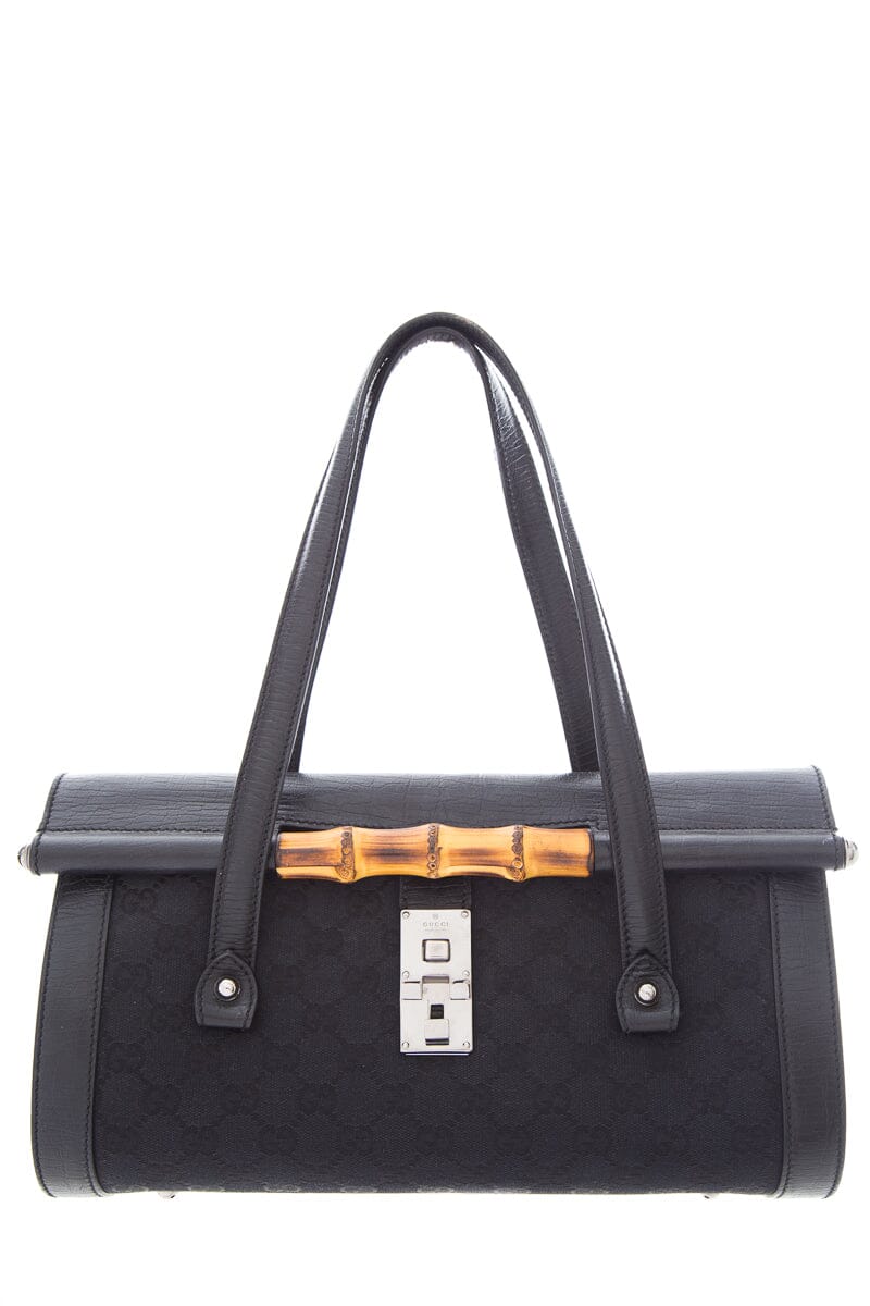 Gucci Black Monogram Bamboo Bullet Handbag. This item is in good condition.