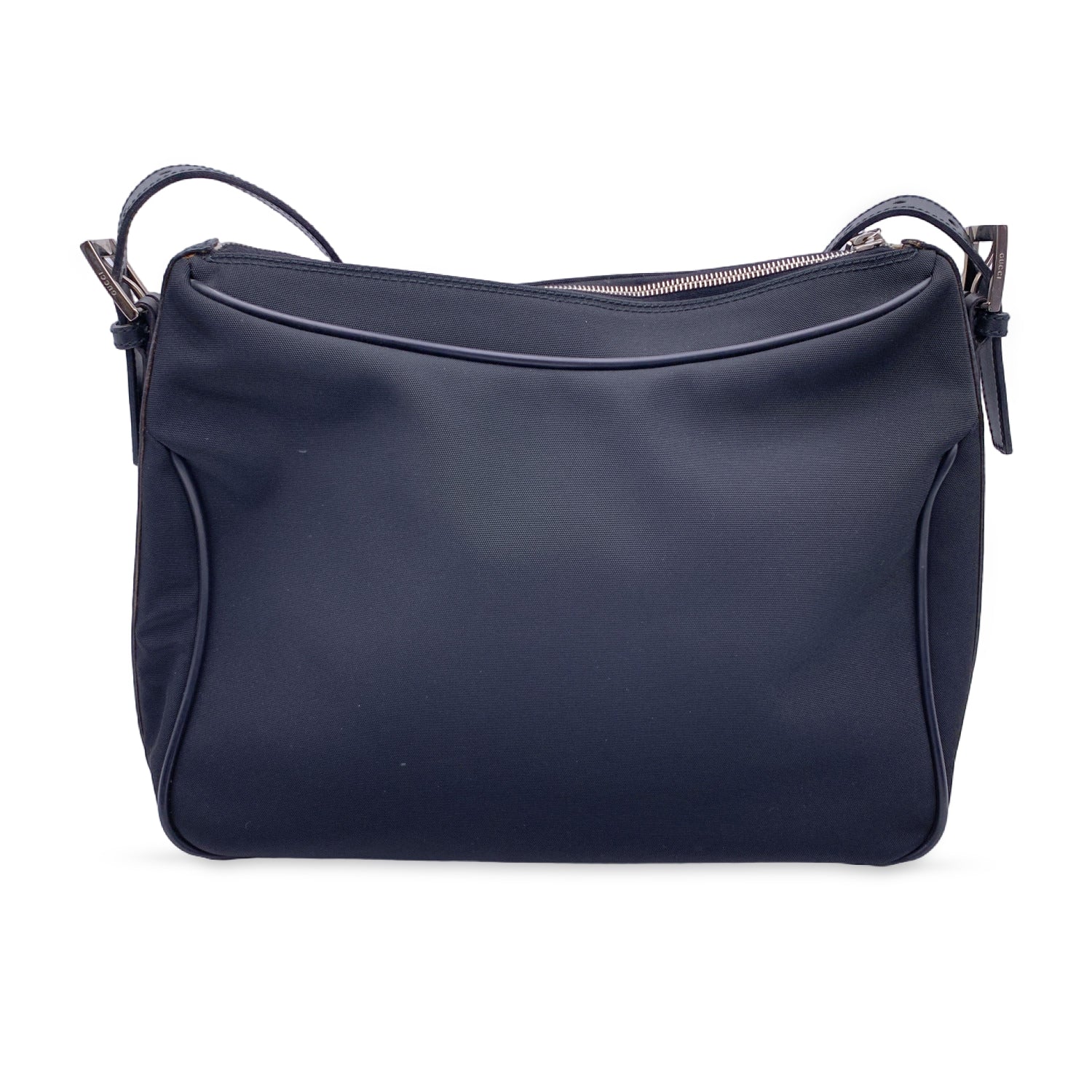 Beautiful Gucci Shoulder Bag, Crafted In Black Nylon Canvas With Black Leather Trim.