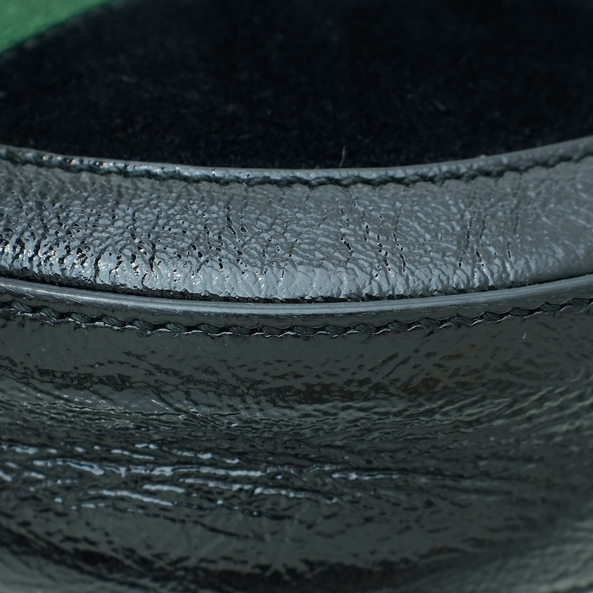 - Material: Black Patent Leather and Suede with Green/Red Web Details