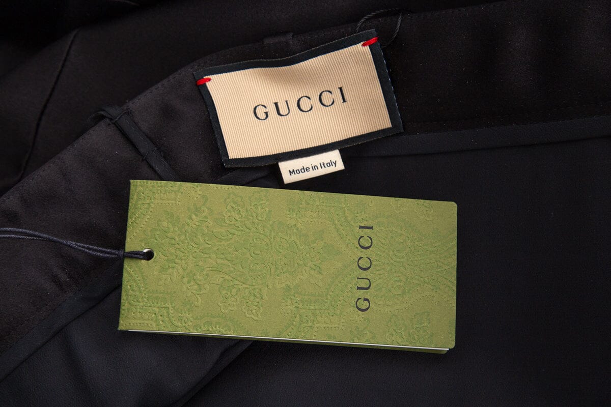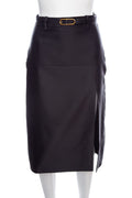 Gucci Black Satin Knee Length Belted Skirt SZ 38 NWT