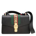- Material: Black Calfskin Leather with Green/Red Web Stripe
