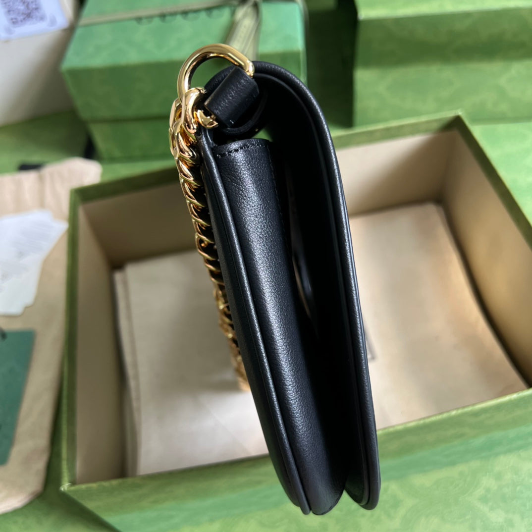 Coming from the House's archives, a round shaped version of the Interlocking G logo is reintroduced for Gucci Love Parade. Crafted from emerald green leather, this shoulder bag is completed by a delicate chain strap, infusing this accessory with a refined feel.