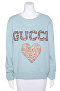 Gucci Blue Floral Embroidered Heart Sweater SZ XL