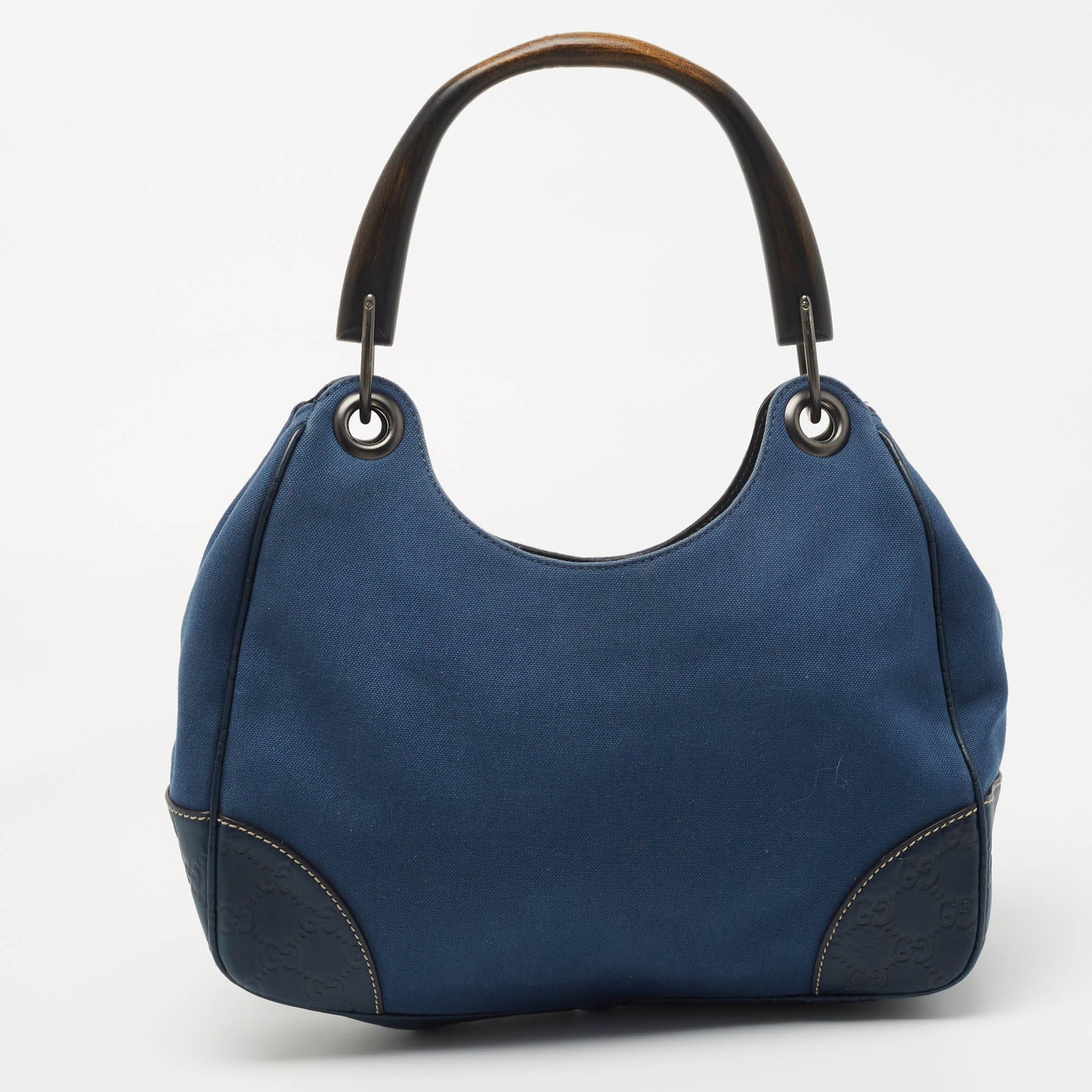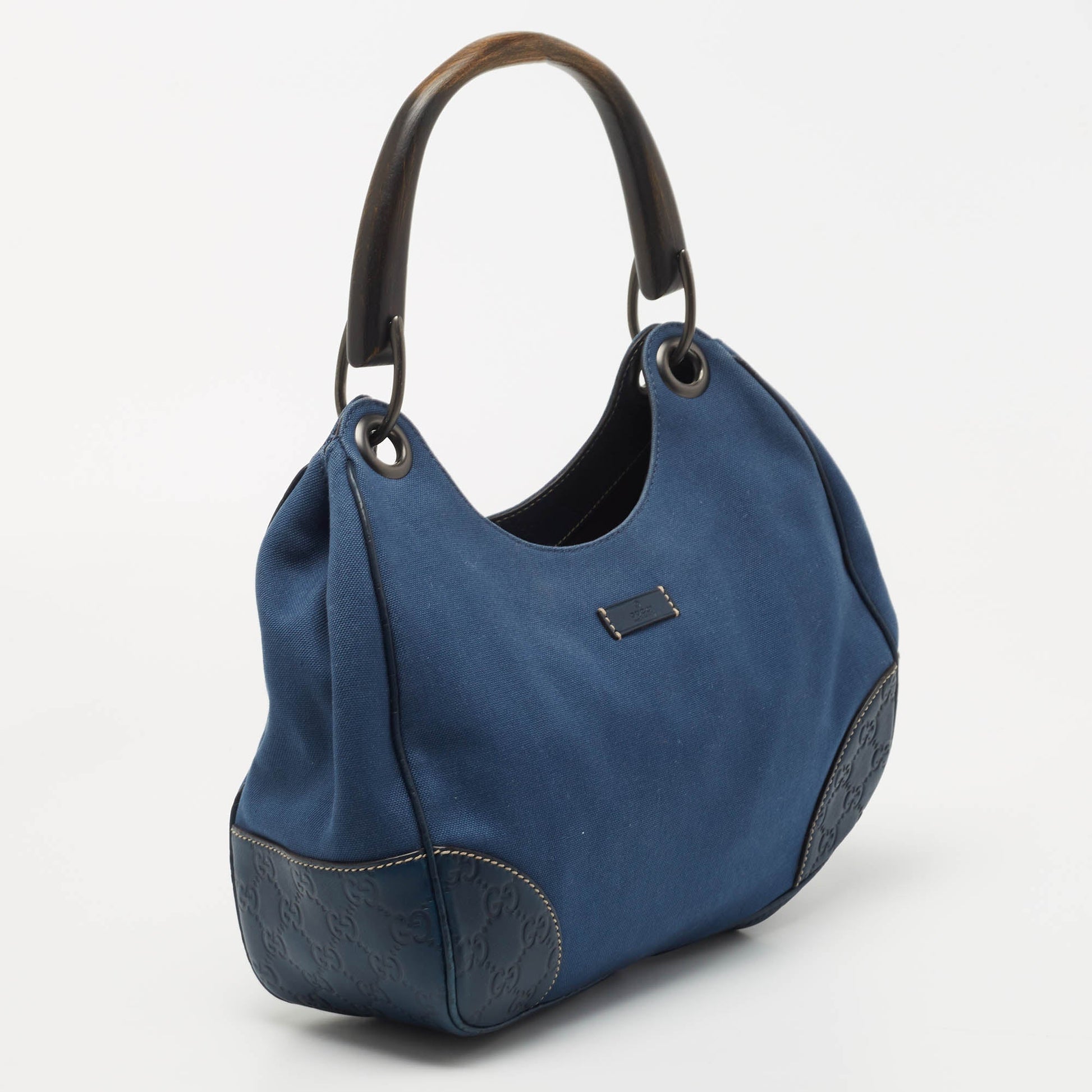 Gucci Blue Guccissima Leather and Canvas Hobo