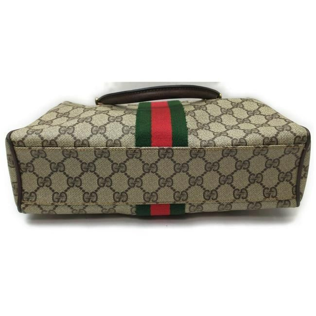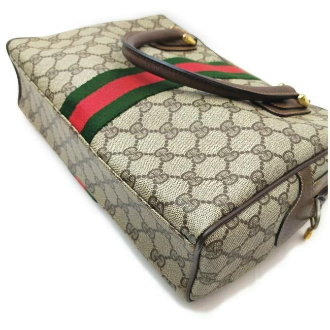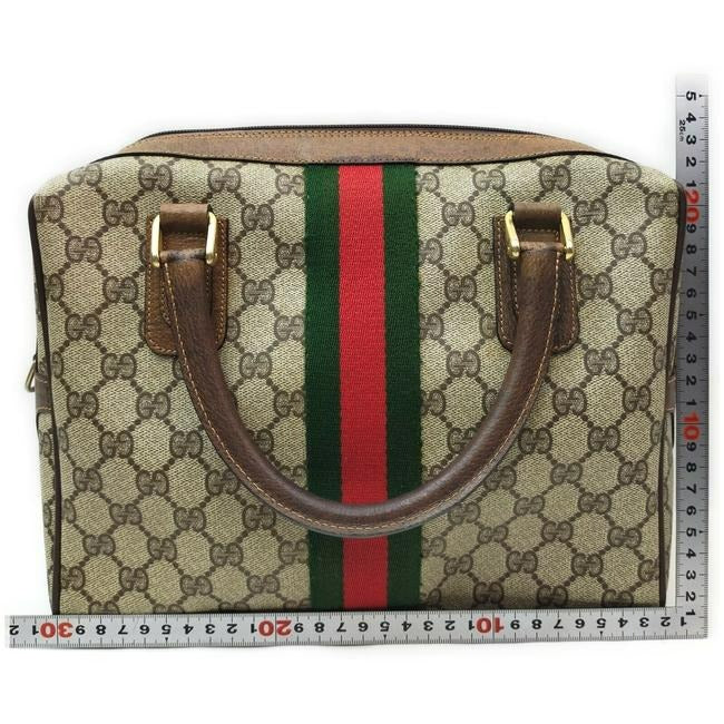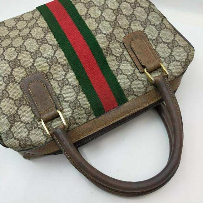 Gucci Boston Bag Guccissima Print And Brown W Red Green Leather Coated Canvas Satchel