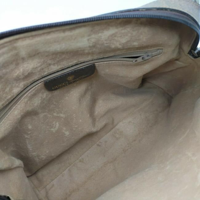 The interior is lined in an ivory colored, suede like fabric that is very clean- see pictures. It has one main compartment with a zip close pocket. Above the pocket is a leather tag embossed in gold with 'Gucci Accessory Collection, Made in Italy' on one side and the serial # on the other side. It has rings on both sides to attach a shoulder strap and is a longer, more portfolio shaped satchel than the wider handheld Boston Bag. Don't miss out!
