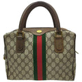 For sale is a vintage, Gucci Accessory Collection, two- way style Boston bag made of a brown Guccissima print coated canvas and brown leather with a wide, red and green center stripe, two, rolled, brown leather handles, a top zip closure, and gold hardware! This is a classic vintage style from the Gucci Accessory Collection with a timeless style that still influences the lines produced by Gucci!