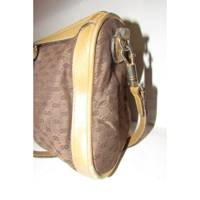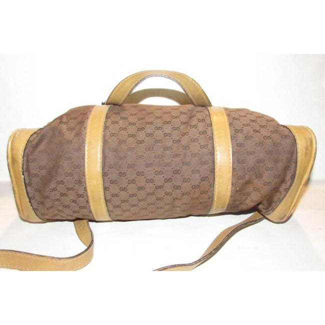 For sale is a vintage, early Gucci, brown small G logo print fabric and camel leather, XL, satchel or Boston/Speedy bag with a detachable strap! This is a super rare purse from Gucci with a timeless style!