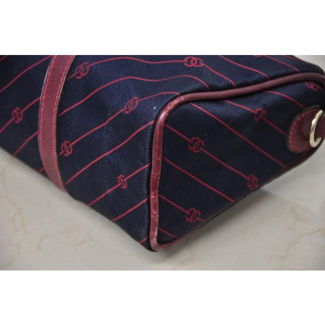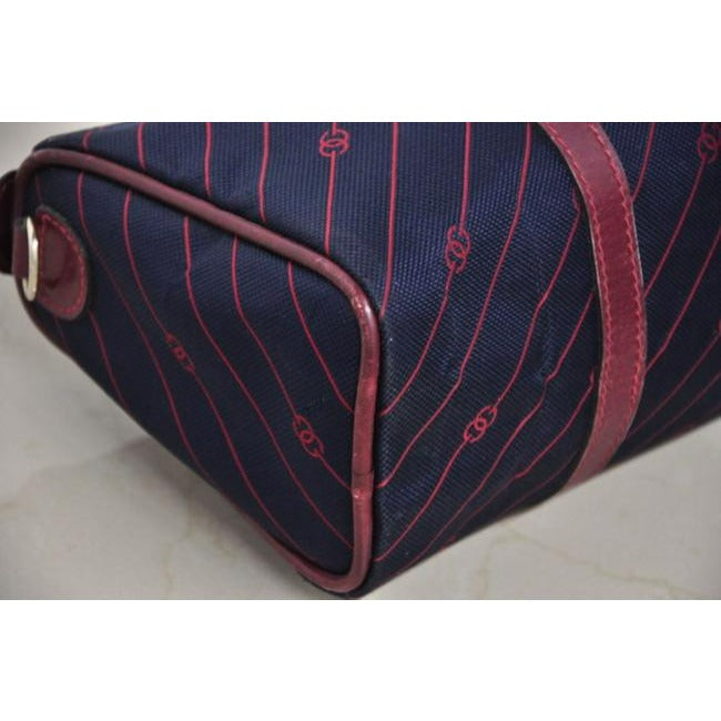 Gucci Boston Xl Anniversary Canvas Leather Two Way Navy W Red Diagonal G Print