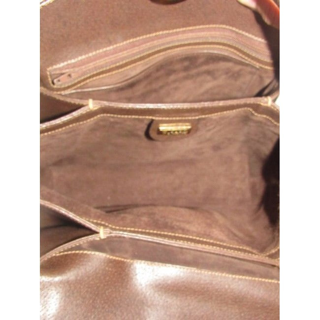 Inside, it has three layers of compartments to allow it to hold more than you may think. The brown suede leather lined interior has lots of slit and zip pockets and three compartments to keep you organized and is very clean. On the top of the center compartment, there is a gold engraved Gucci plaque on one side and the #000.46.0025.