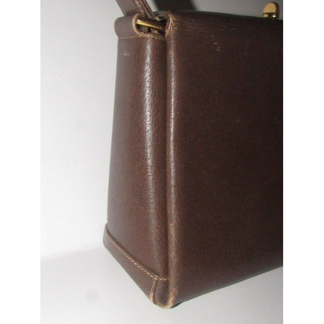 Gucci Boxy Structured Kelly Top Handle Purse Brown Leather Shoulder Bag