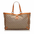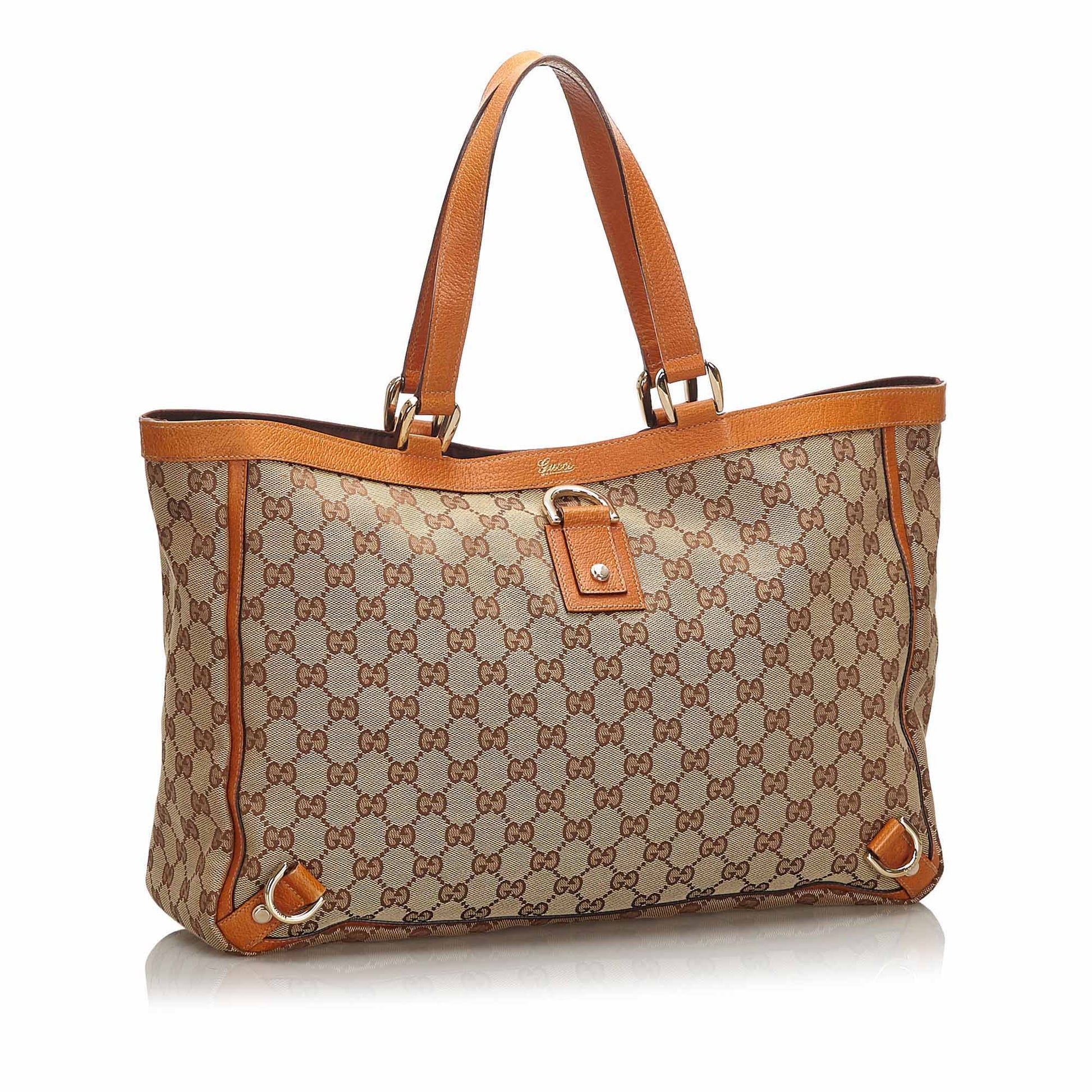 Gucci Brown Beige Canvas Fabric GG Abbey D Ring Tote Bag Italy