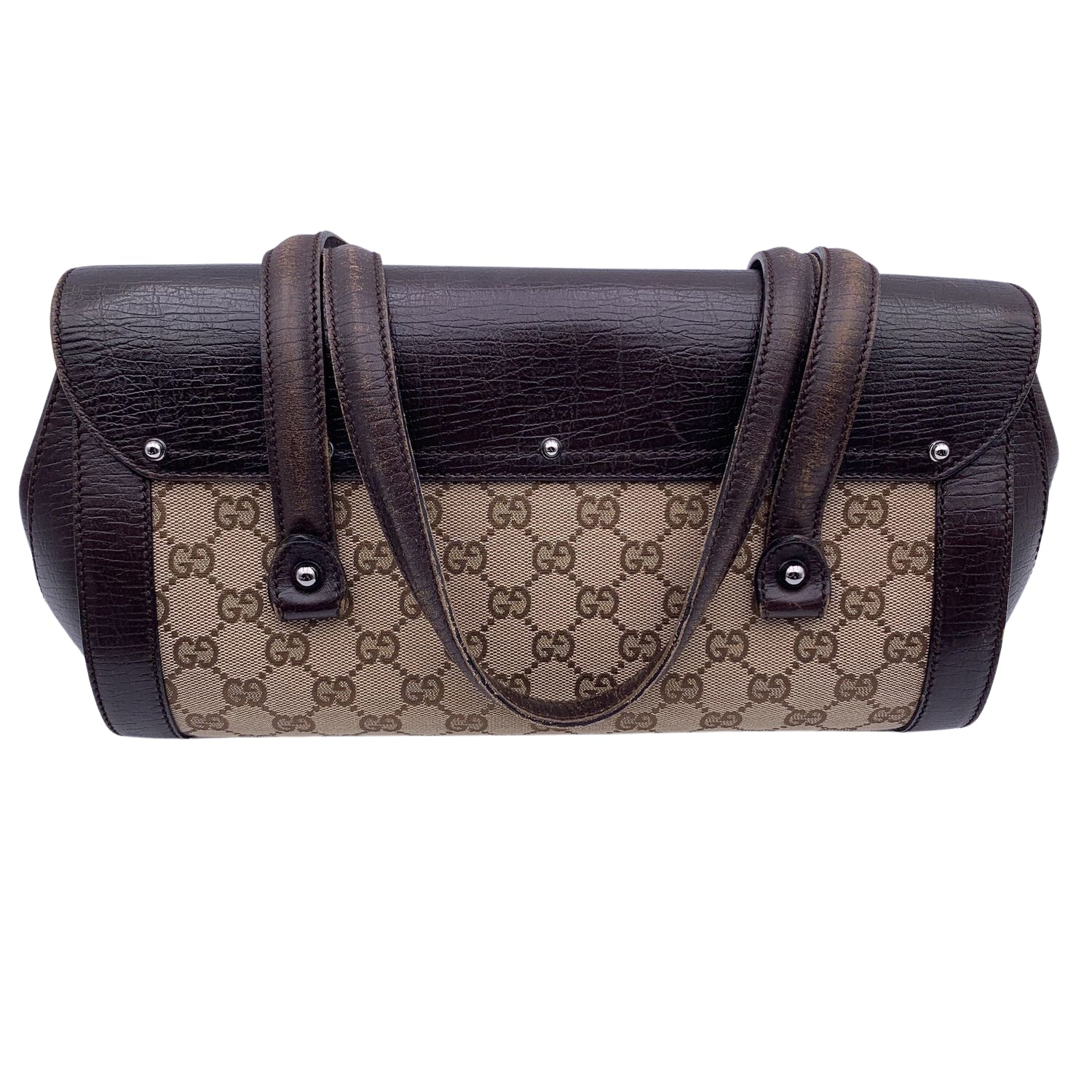 GUCCI Brown Gg Monogram Canvas Bamboo Bullet Shoulder Bag