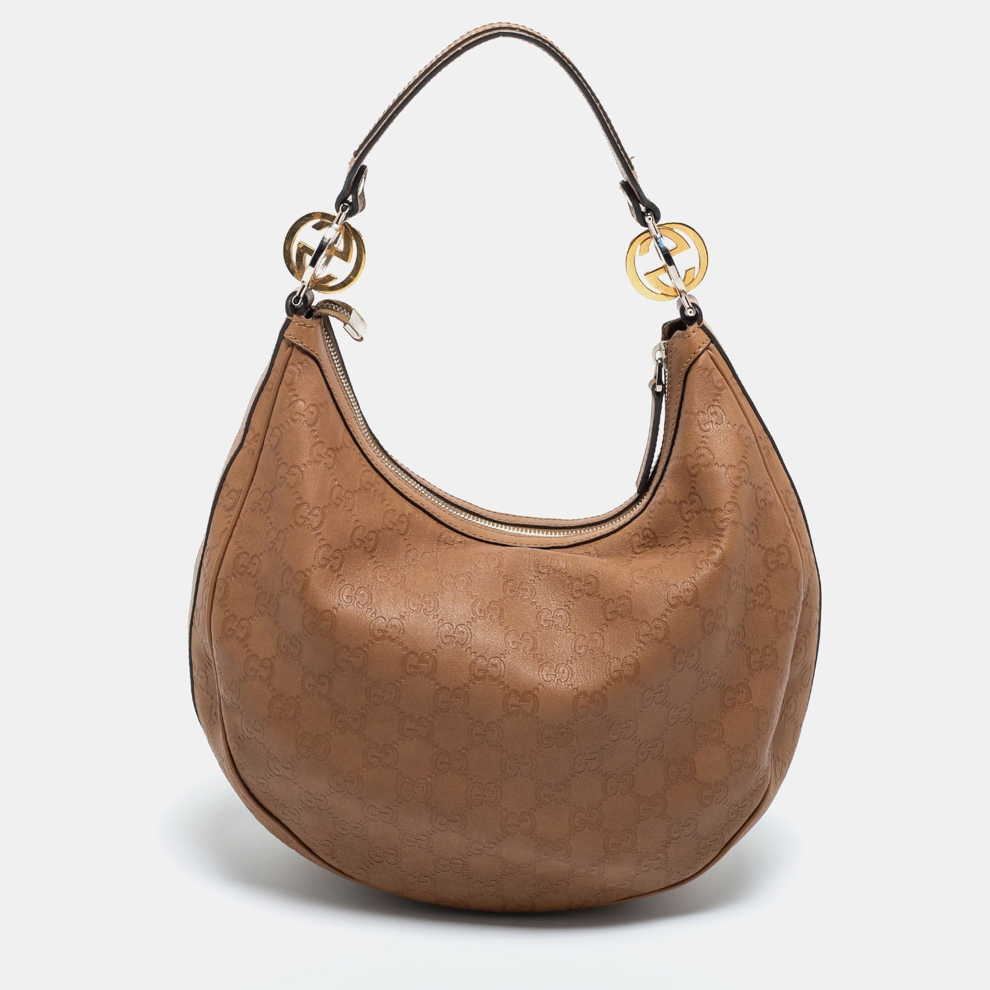 Gucci brown Guccissima Leather Medium GG Twins Hobo