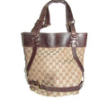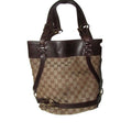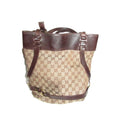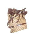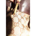 Gucci brown Guccissima print canvas & leather strappy cylindrical tote with brass accents