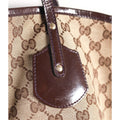 For sale is a vintage Gucci brown Guccissima print canvas & leather large satchel/tote style handbag with brass grommets, a purse charm with GUCCI spelled out in large purple letters, and a timeless style.