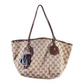 Louisa Gucci brown Guccissima satchel/tote w purple resin logo charm