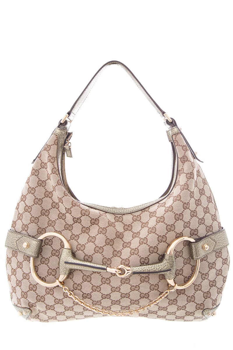 Gucci Brown Jackie O Horsebit Canvas Handbag
