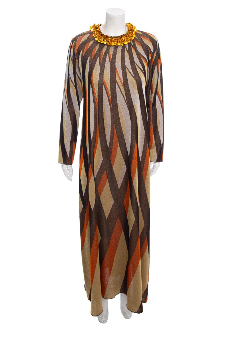 Gucci Brown & Metallic Geometric Printed Long Dress SZ XS