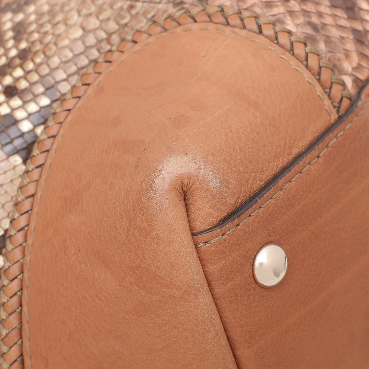 - Material: Brown Python Leather with Leather Trim