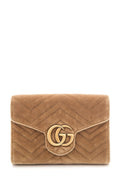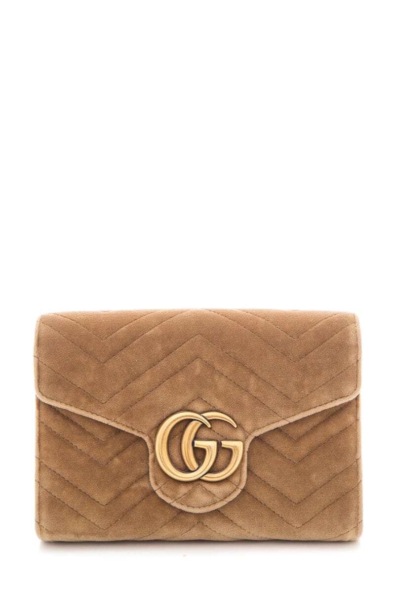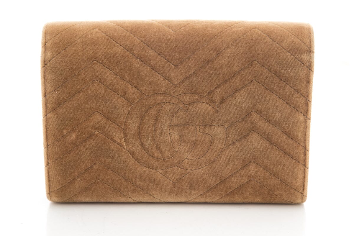 Gucci Brown Velvet Marmont Cross-Body Chain Wallet