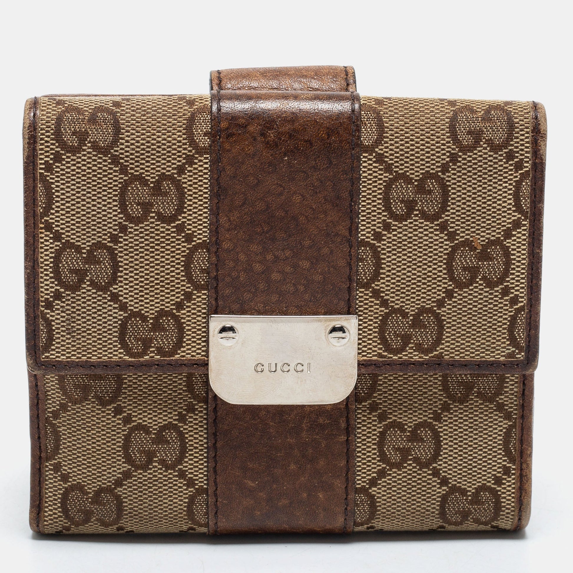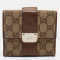 Gucci Brown/Beige GG Canvas and Leather Flap French Wallet
