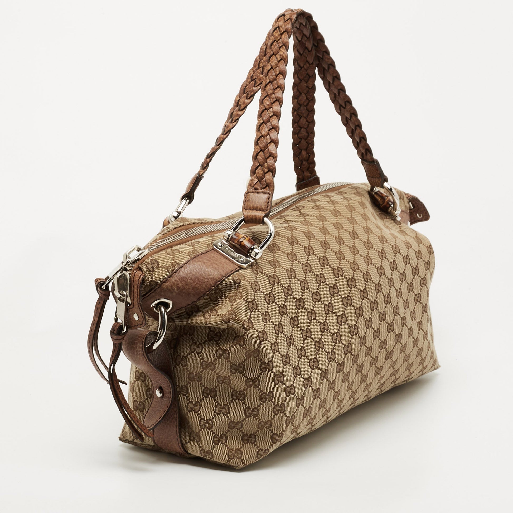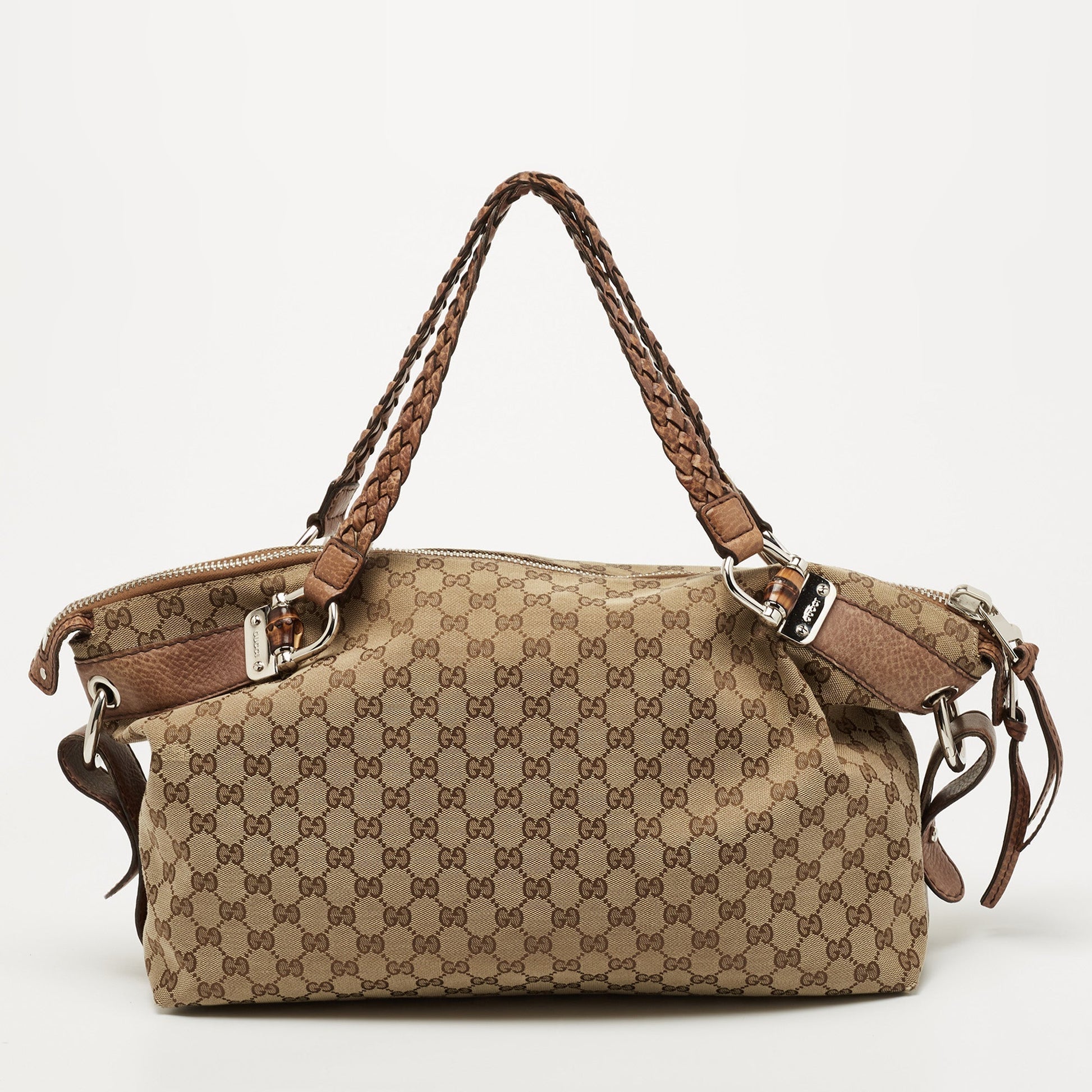 Gucci Brown/Beige GG Canvas Medium Bamboo Bar Tote