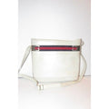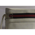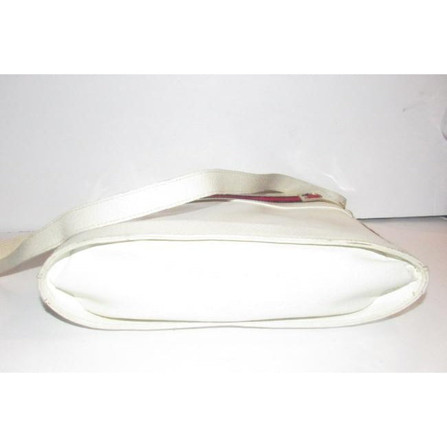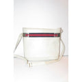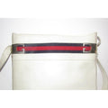 Gucci White Hard Boxy Leather Bucket Bag w red/blue stripe