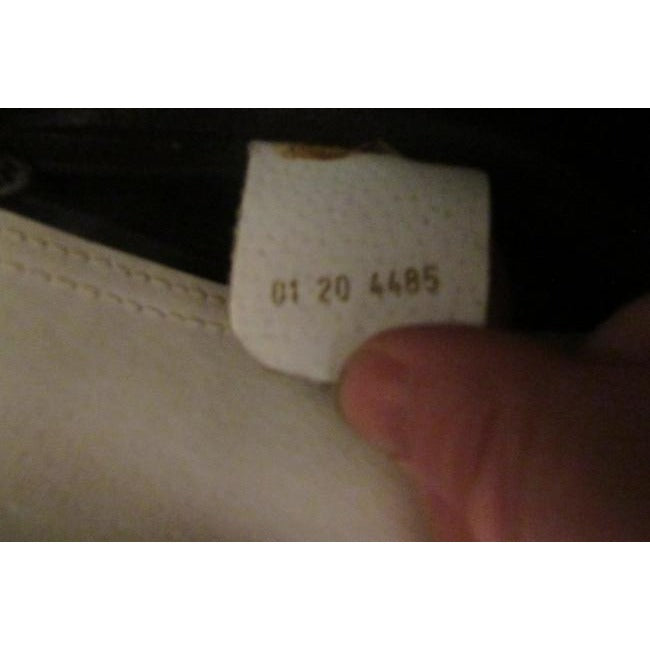 It has one, large interior compartment with a zip pocket. It is in mint vintage condition- it shows little wear, especially for a white purse- see pictures. Very little wear on the exterior or interior- the owner took excellent care of this purse. The interior has the early embossed gold Gucci crest leather tag and the serial number 01. 20. 4485 embossed in gold on the back. It has been authenticated by a 3rd party expert, so buy with confidence! This is a rare classic from Gucci and will always be in style!