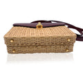 It Is Crafted In Beige Wicker And Smooth Burgundy Leather With Gold Metal Chuncky Chain On Top.