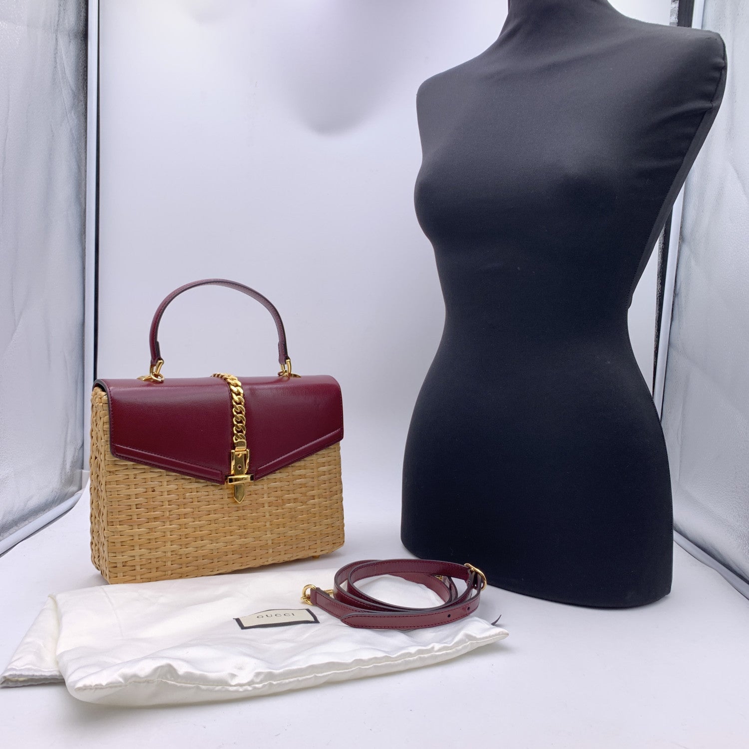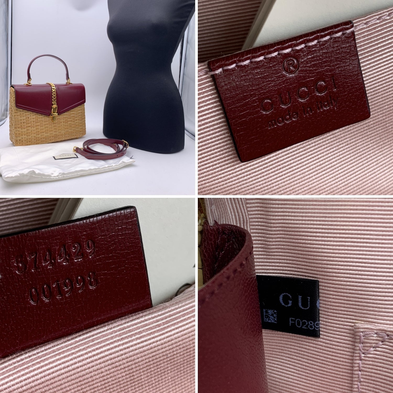 GUCCI Burgundy Leather Wicker 2 Way Sylvie Small Shoulder Bag